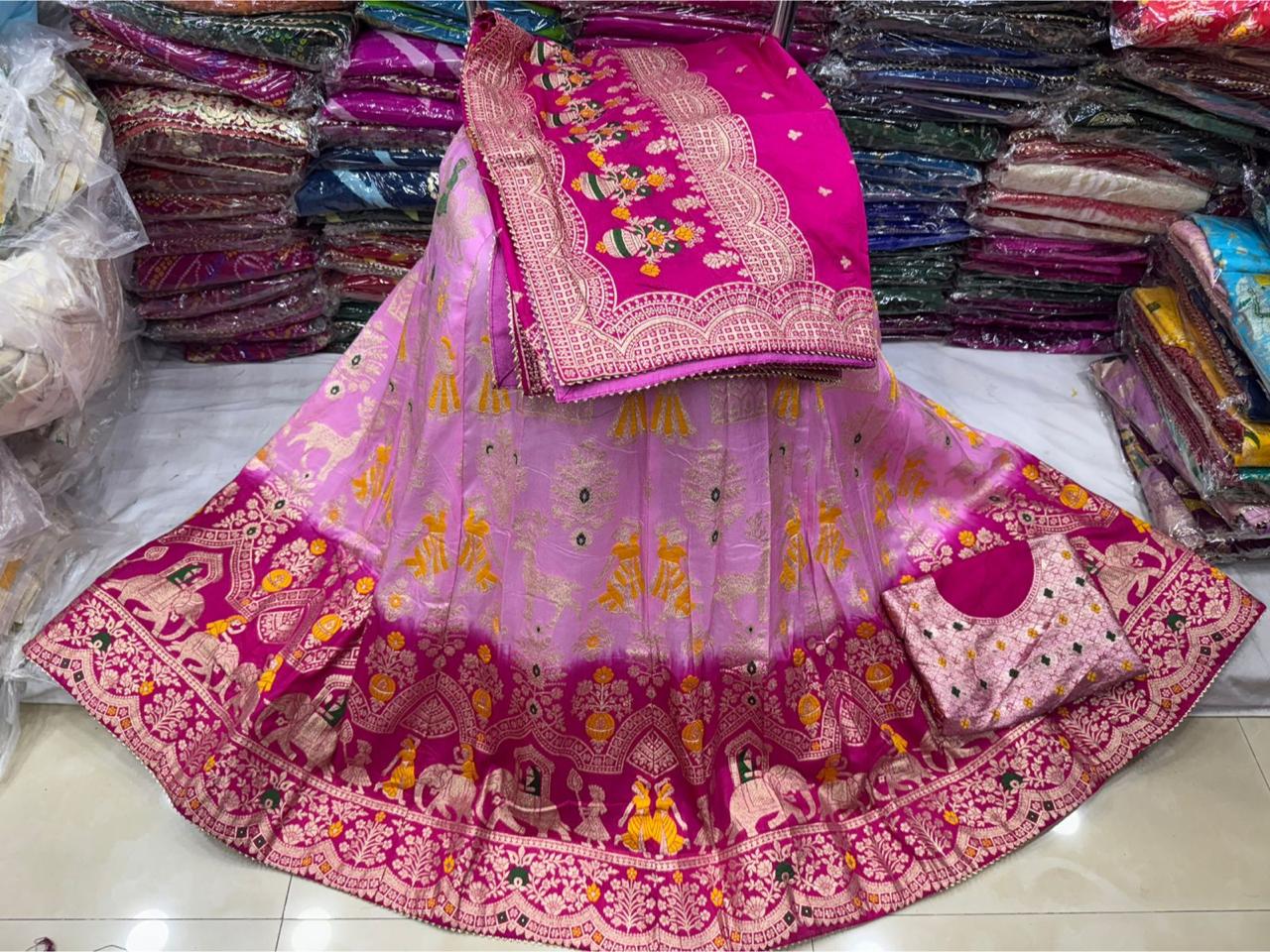 Heavy Meena Banarasi Blouse | Waist 44 | Length 42 | Dupatta 2.5m | Cotton Inner Lining | 5 Inch Bukram | Weight 1kg